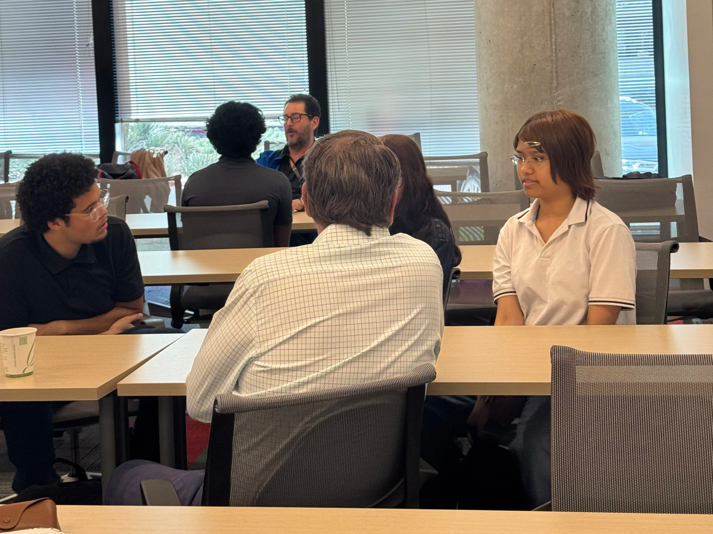 To further support workforce readiness, students participated in the Oracle Job Shadow and Career Day, an immersive experience designed to bridge the gap between education and the professional world. The event brought together 11 Oracle professionals and 20 students from Weiss High School and Travis Early College High School for a day focused on career exploration, skill-building, and mentorship.